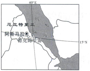 厄立特里亚位于非洲东北部(12°N~18°N),国土面积 12. 5 万 km² ,其中高原山地占比超过 80% 。 该国气候干旱,年均降水量不足 200 mm,但时空分布不均。 作为世界最不发达国家之一,农业是该国的支柱产业,其能源消费结构中生物燃料占比高达 85%,电力覆盖率不足 30%。2015 年,中国援建的德克姆哈雷 50 MW 光伏电站投产,标志着该国能源转型的开端。 如图(见下页左栏上图)示意厄立特里亚位置。
