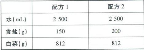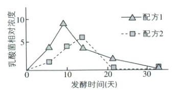 [深度解析]制作泡菜时,将食盐溶于清水后煮沸,目的是杀灭盐水中的杂菌,冷却后再使用是为了防止高温杀死乳酸菌等发酵菌种,A正确;乳酸菌是严格的厌氧菌,发酵过程需要在无氧环境中进行,通气会抑制乳酸菌的生长和繁殖,且其发酵不产生气体,无需定期排气,B错误;由图表可知,配方2乳酸菌的相对浓度较低有可能是因为此配方的盐浓度高于乳酸菌细胞内溶液浓度,造成细胞失水,影响了其正常的生命活动,不利于乳酸菌的繁殖,C正确;在泡菜发酵过程中,亚硝酸盐含量的变化一般是先升高后降低,可能与题图中乳酸菌相对浓度的变化接近,D正确。