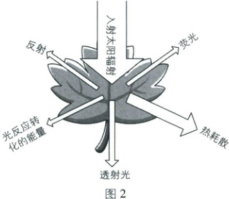$\mu mol· m^{-2}· s^{-1}$;当光照过强时,光反应产生的电子不能及时传递给生成 NADPH,从而传给$O_{2}$ 产生$O_{2}^{-}$(自由基),损伤光合结构导致光抑制。(3)图 2 是太阳辐射叶片后的光能去向。光合色素吸收的光能有三个去向:用于光反应转化、热耗散、以荧光形式发光。光反应转化和热耗散都会引起荧光淬灭,由光反应转化引起的荧光淬灭称为光化学淬灭($q^{p}$,光系统Ⅱ光化学反应的能力),由热耗散引起的荧光淬灭称为非光化学淬灭($q^{N}$,热耗散能力)。黄连露天栽培易发生光抑制,为减轻光抑制,黄连可通过调节光能各去向的比例,提升防御能力,包括