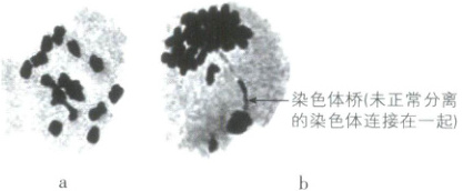 C.图 b 细胞中的染色体桥断裂后,可能导致染色体结构变异
