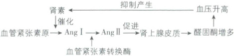(4)可通过抑制血管紧张素转换酶的作用,减少AngⅡ的生成,使肾上腺皮质产生醛固酮减少,从而使血压降低(2分) 负反馈
