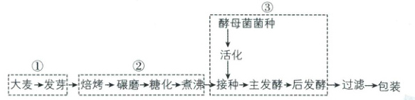 C.过程②煮沸时加入啤酒花可增加啤酒的风味,煮沸后需冷却才能接种