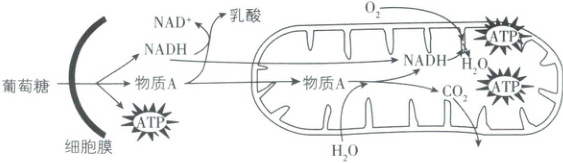 [深度解析]人体的成熟红细胞中无线粒体,无法进行有氧呼吸,A错误;人体细胞中无氧呼吸产物是乳酸,物质A(丙酮酸)不能被转化为酒精和CO₂,B错误;葡萄糖氧化分解释放的能量大部分以热能形式散失,少部分转化为ATP中的能量,C正确;NADH的合成场所有细胞质基质、线粒体基质,线粒体内膜消耗NADH,D错误。