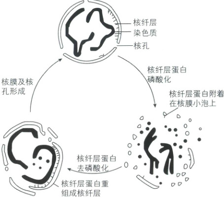 6.图示为核膜的解体和重建过程,核膜内面有一个核纤层,组成核纤层的蛋白质称为核纤层蛋白。下列相关叙述错误的是