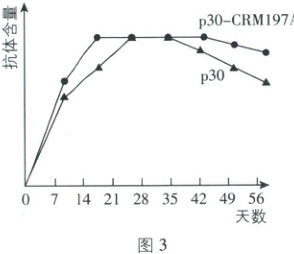 (5)为验证融合蛋白疫苗的效果,科研人员将p30蛋白、p30-CRM197A融合蛋白分别注射到小鼠体内,检测抗体含量,结果如图3所示。据此可以判定融合蛋白疫苗效果更好,依据有