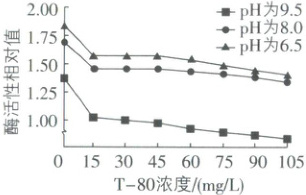 D.T - 80 浓度为 105 mg/L、pH 为 9.5 时,木瓜蛋白酶因肽键断裂而失活