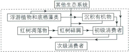 18. 下图虚线框内为红树林生态系统能量流动示意图(部分),红树凋落物必须先经甲壳类动物的消化处理,才能被鱼类有效利用。相比之下,藻类等植物可直接被鱼类取食。下列叙述正确的是