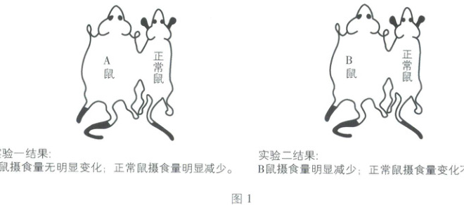 (1)A鼠摄食量无明显变化,B鼠摄食量明显减少