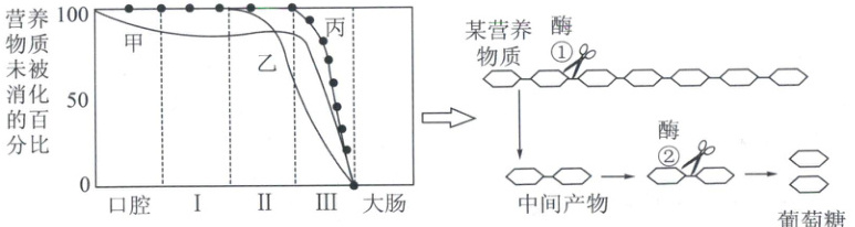 ;(3)甲、乙、丙三种营养物质均在Ⅲ中被消化,Ⅲ是