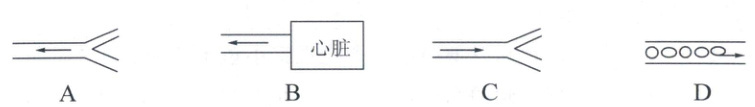 2. 下图表示的是不同的血管,图中“→”表示血流方向,其中能表示静脉血管的是(