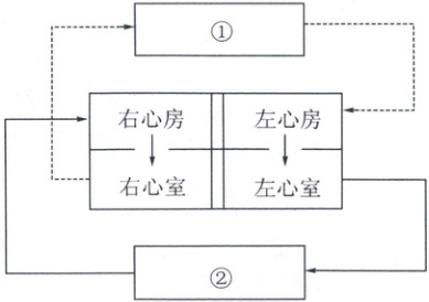 )A.图中虚线表示体循环途径,实线表示肺循环途径