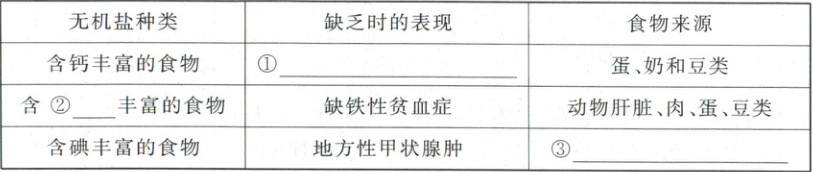 (2)①儿童佝偻病、老人骨质疏松症 ②铁 ③海带、紫菜、带鱼