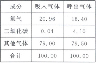 6. 下表为人体吸入气体和呼出气体成分含量(%)比较;为了探究人体呼吸时二氧化碳体积分数的变化,某同学做了实验,结果如下图所示。请分析回答: