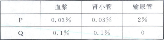 6. 下表是健康被测试者血浆、肾小管、输尿管中P和Q两种物质的浓度百分比,据此分析表中P和Q各是什么物质 (