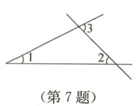 7. 如图,∠1,∠2,∠3中,和是同位角.