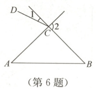 6. 如图,∠1与∠B是直线和被直线所截构成的同位角;∠2与∠A直线和被直线所截构成的同位角.