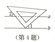 4. 如图,小亮把三角板的直角顶点放在直线b上.若∠1=40°,则a//b时,∠2的度数是 ()