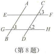 10. 如图,∠1=45°,∠2=135°,图中有互相平行的直线吗?如果有请写出,并说明理由.