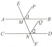 13. 已知,如图,直线AB、CD被直线EF所截,MP平分∠EMB,NQ平分∠END,∠1=∠2,试说明MP//NQ.下面是小莉的解题过程.