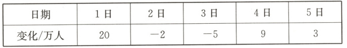 2. 某市客运管理部门对“五一”黄金周假期五天的客流变化量做了不完全统计,数据如下(用正数表示客流量比前一天上升数,用负数表示下降数):