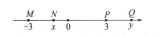 3. 如图,实数$-3$,$x$,$3$,$y$在数轴上的对应点分别为$M$,$N$,$P$,$Q$,这四个数中绝对值最小的数对应的点是 ()
