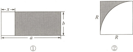 ② $ S = R × R - \frac{1}{4} × \pi × R^2 = R^2 - \frac{1}{4} \pi R^2 $;