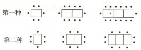 答:第一种摆放方式能坐$22$人,第二种摆放方式能坐$14$人。