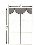 2. 如图,一个窗户被装饰布挡住了一部分,其中窗户的长$a$与宽$b$之比是$3:2$,装饰布由一个半圆和两个四分之一圆组成,圆的直径都是$\frac{b}{2}$,计算这个窗户未被遮挡部分的面积.(结果用只含字母$b$的代数式表示,保留$\pi$)