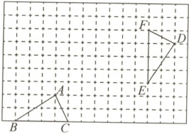5. 如图,在方格纸上,有两个形状、大小一样的三角形,请指出如何运用轴对称、平移、旋转这三种图形变换,将 $\triangle ABC$ 重合到 $\triangle DEF$ 上.