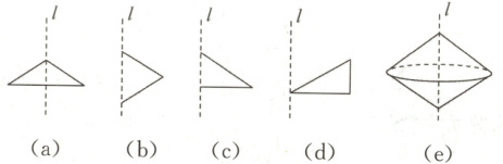 1. 如图,将三角形绕直线 $l$ 旋转一周,可得图(e)所示立体图形的是 ( )