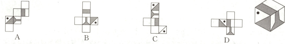 2. 如图,哪一个展开图是可以折叠成右面的正方体? (