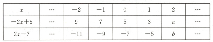 (2)表中$-2x + 5$的值的变化规律是:$x$的值每增加$1$,$-2x + 5$的值就减少$2$. 类似地,$2x - 7$的值的变化规律是:;