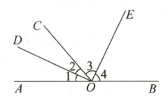 7. 如图,O 为直线 AB 上一点,∠AOC=$50^{\circ}$,OD 平分∠AOC,∠DOE=$90^{\circ}$.