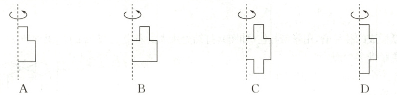 3. 圆柱是由长方形绕着它的一边所在直线旋转一周所得到的,那么下列四个选项绕直线旋转一周可以得到如图立体图形的是()