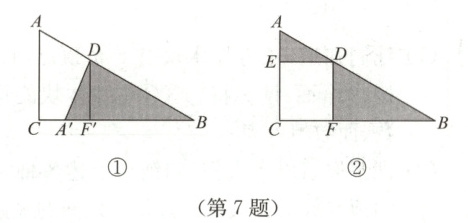 (2) 若$AD=3$,$DB=4$,则$\triangle ADE$和$\triangle BDF$面积的和为.