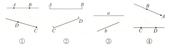 3. 以下四个图中有直线、射线、线段,其中能相交的是 ()