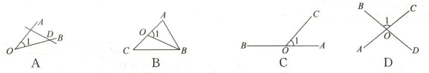 2. 下列图中的∠1也可以用∠O表示的是 ()
