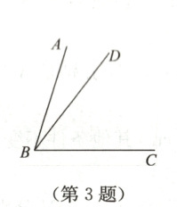 3. 如图,BD在∠ABC的内部,∠ABD = $\frac {1}{3}$∠CBD,如果∠ABC = $80^{\circ}$,则∠ABD = ()