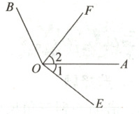 9. 如图,$\angle AOB = 116^{\circ}$,$OF$是$\angle AOB$的平分线,$\angle1$和$\angle2$互余,求$\angle1$的度数.