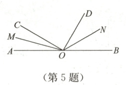5. 如图,$\angle AOB$是平角,$\angle AOC = 30^{\circ}$,$\angle BOD = 60^{\circ}$,$OM$,$ON$分别是$\angle AOC$,$\angle BOD$的平分线,$\angle MON =$.
