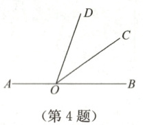 4. 如图,点$O$在直线$AB$上,射线$OC$平分$\angle DOB$.若$\angle COB = 34^{\circ}15'$,则$\angle AOD =$.