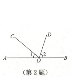 2. 如图,已知$O$是直线$AB$上一点,$\angle1 = 40^{\circ}$,$OD$平分$\angle BOC$,则$\angle2$的度数是 ()