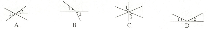 1. 下列各图中,∠1 与∠2 是对顶角的是 ()