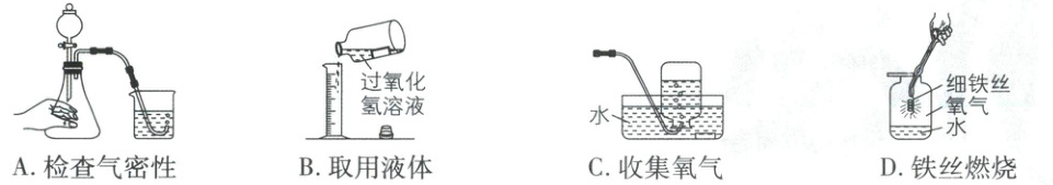 5.[2025 江苏苏州]实验室用30 mL 8%的过氧化氢溶液和二氧化锰制氧气,并进行铁丝燃烧实验。下列实验操作不规范的是 (