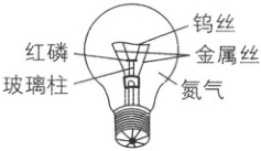 4.D 【解析】钨丝的熔点高,这样才能在高温下工作而不熔化,A错误;金属丝具有导电性,B错误;灯泡内填充氮气是因为其化学性质不活泼,C错误;白炽灯工作时,红磷能与残留的氧气反应生成五氧化二磷,从而消耗残留氧气,D正确。