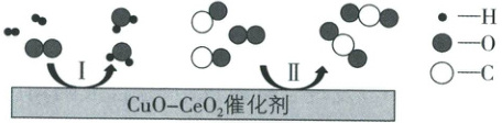 (2)①反应Ⅰ可应用于燃料电池,燃料电池工作时化学能转化为电能。②由微观示意图可知,反应Ⅱ是一氧化碳和氧气在$CuO - CeO_{2}$催化剂的催化作用下反应生成二氧化碳,反应的化学方程式为$2CO + O_{2}\overset{CuO - CeO_{2}催化剂}{=}2CO_{2}$。