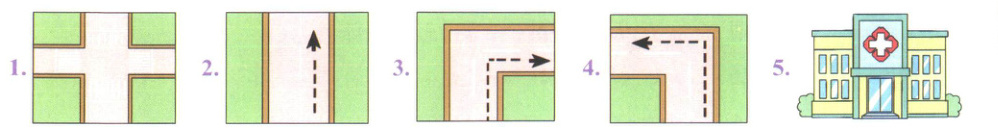 二 1. crossing 2. go straight 3. turn right 4. turn left 5. hospital