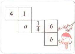五 ⚪趣味数学 如图是一个正方体的展开图,这个正方体相对两个面上的数互为倒数,那么$a ÷ b$的商是(
