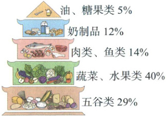 四 青少年每天都需要摄入充足的营养,专家建议$12$岁男孩每天应该摄入的食物量大约是$1500g$。请根据健康饮食金字塔的信息,回答下列问题。