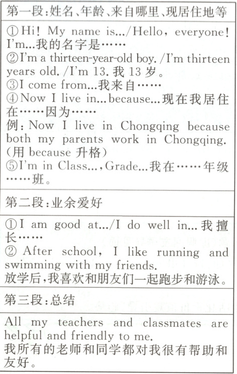 I am good at running and swimming. After school, I like running and swimming with my friends. I often help my classmates with their English, and they help me to learn Chinese.